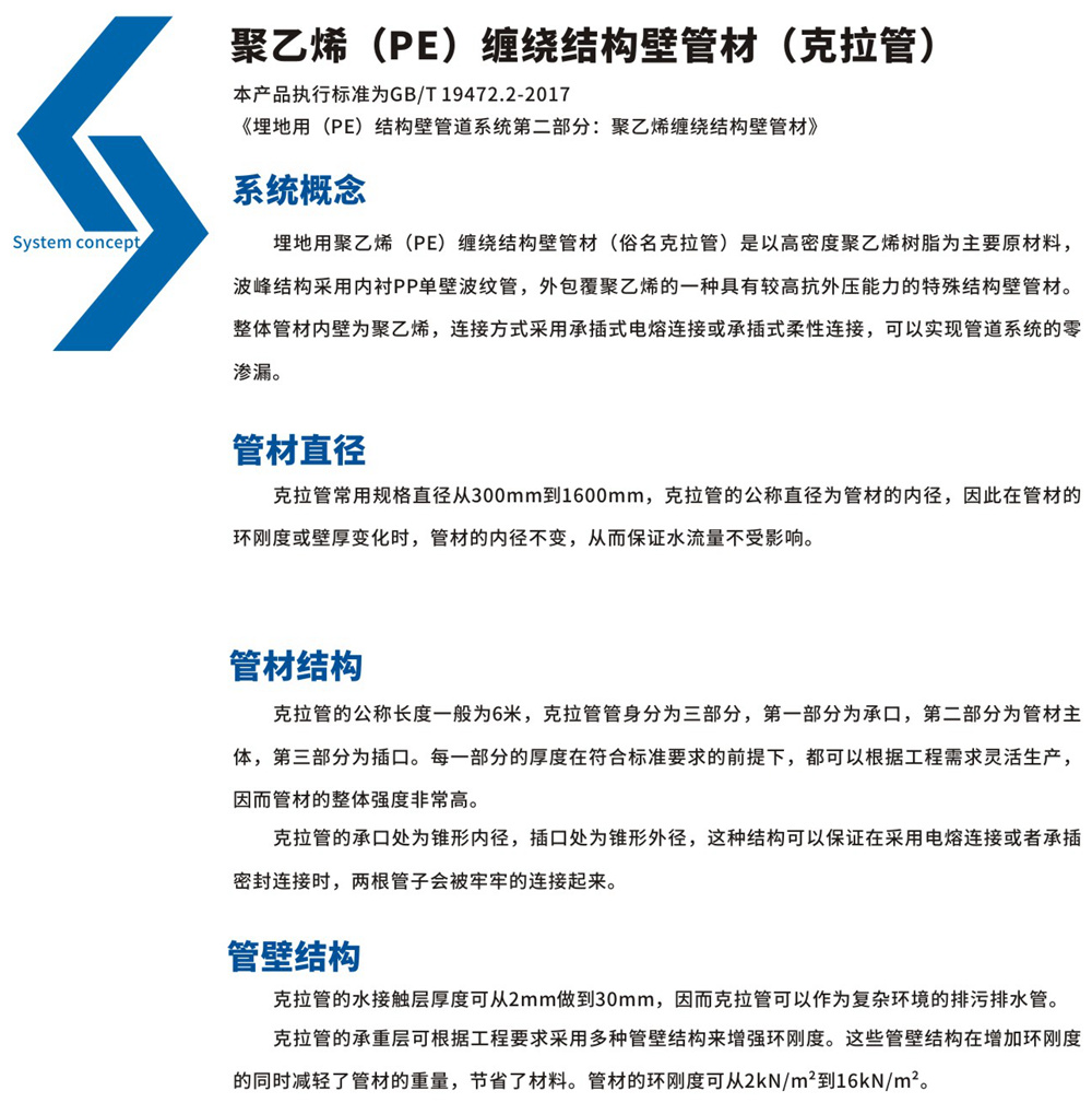 聚乙烯(PE)纏繞結構壁管(克拉管):